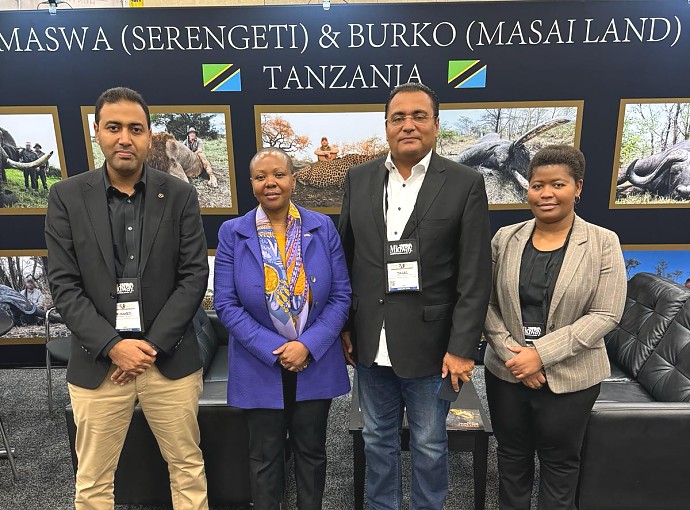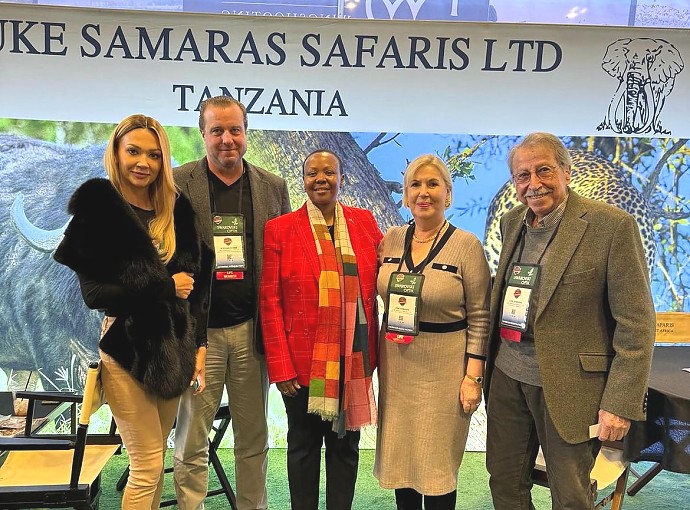 Mhe. Balozi Dkt. Elsie Sia Kanza akiwa na wadau wa sekta ya uwindaji kutoka Tanzania na Marekani wakati wa maonesho ya uwindaji jijini Nashville, Tennessee.