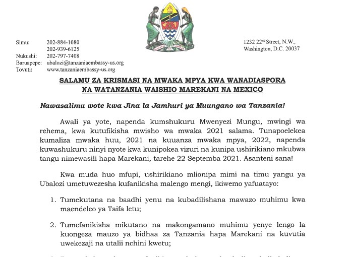 Read MoreKatika mwendelezo wa matukio ya kuadhimisha miaka 60 ya Uhuru wa Tanzania Bara na miaka 60 ya uhusiano kati ya Tanzania na Marekani, tarehe 07 Desemba, 2021, Ubalozi wa Tanzania, Washington, D.C. umefanya…