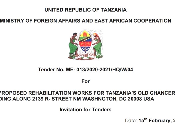 Read MoreUNITED REPUBLIC OF TANZANIAMINISTRY OF FOREIGN AFFAIRS AND EAST AFRICAN COOPERATION Tender No. ME- 013/2020-2021/HQ/W/04ForTHE PROPOSED REHABILITATION WORKS FOR TANZANIA’S OLD CHANCERY BUILDING…
