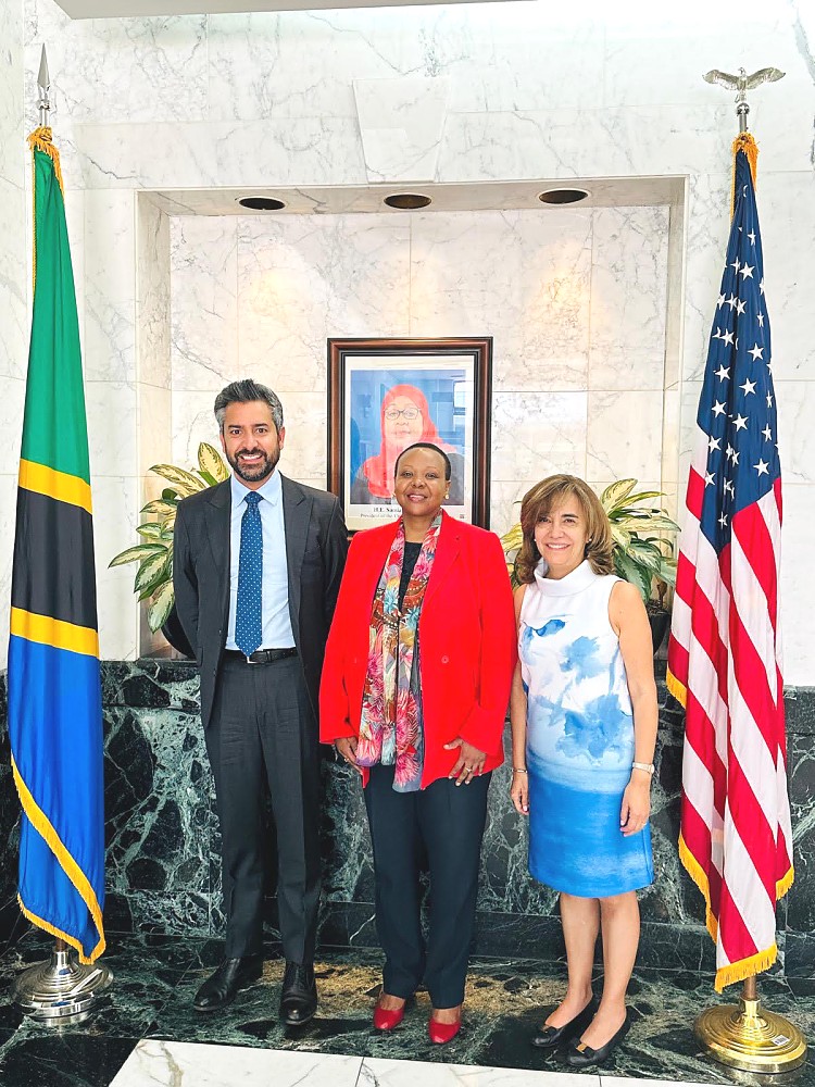 Mheshimiwa Balozi Dkt. Elsie Sia Kanza alikutana kwa mazungumzo na Bi. Maria A. Velez, Makamu wa Rais wa kampuni ya SBA ya hapa Marekani anayeshughulikia masuala ya uhusiano na Bw. Ravi Suchak, Mkuu wa Mambo ya Nje, Uendelevu na Sera za Umma wa kampuni ya Helios Towers ya Uingereza ambayo inajihusisha na ujenzi wa miundombinu ya mawasiliano.