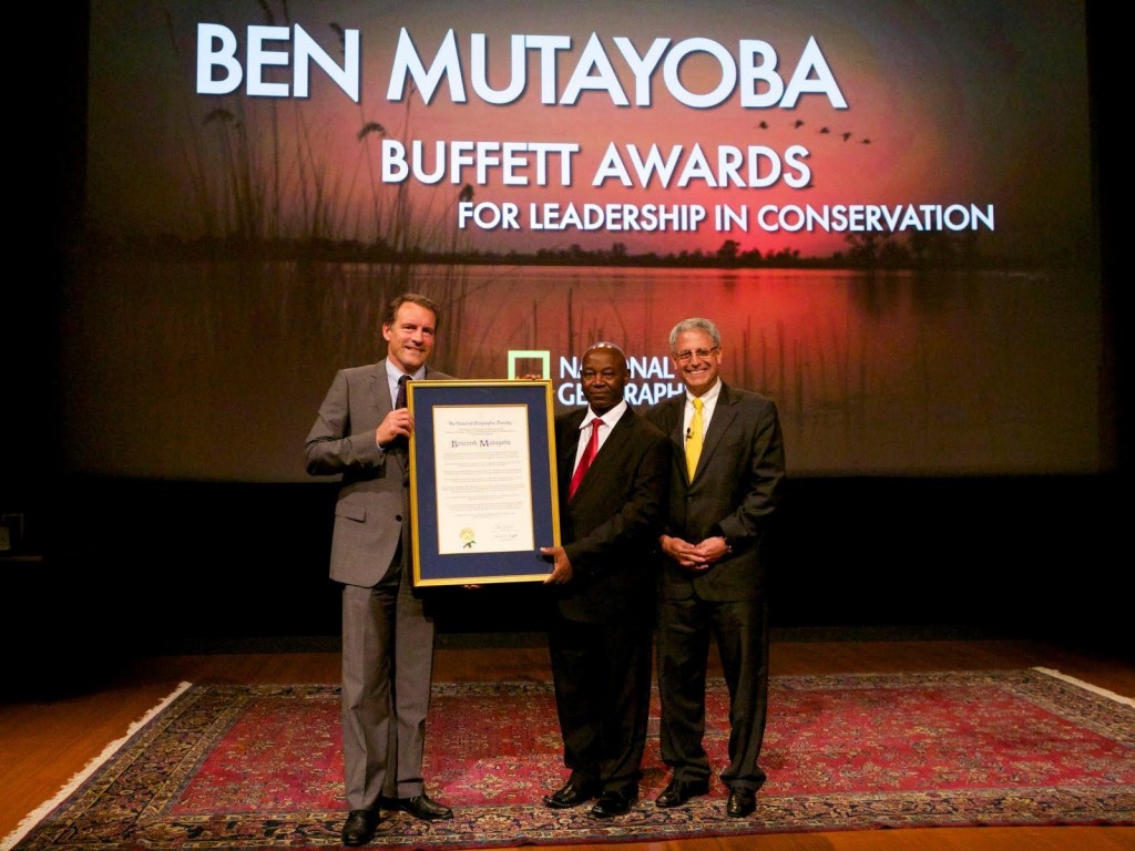 Professor Benezeth Mutayoba, professor at Tanzania Sokoine University of Agriculture and Vice Chairman of the Tanzania Elephant Protection society, received the prestigious 2014 National Geographic/Buffet Award for leadership in Africa Conservation at a ceremony at National Geographic Headquarters in Washington, DC on June 12, 2014.