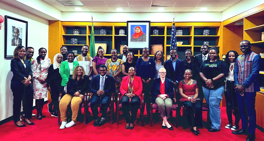 Ubalozi ulifurahi kuwakaribisha Tanzania House washiriki wa programu ya YALI inayodhaminiwa na Serikali ya Marekani. Washiriki hao wamemaliza mafunzo kwenye vyuo mbalimbali hapa Marekani na walikaribishwa Ubalozini kubadilishana mawazo kuhusu masuala waliyojifunza, shughuli za Ubalozini na namna tunavyoweza kushirikiana kwa manufaa ya Taifa. Ubalozi unawatakia vijana hawa kila la heri wanaporejea nyumbani. Aidha, Ubalozi unaishukuru Serikali ya Marekani kwa kutoa mafunzo hayo muhimu kwa vijana wa Kitanzania.