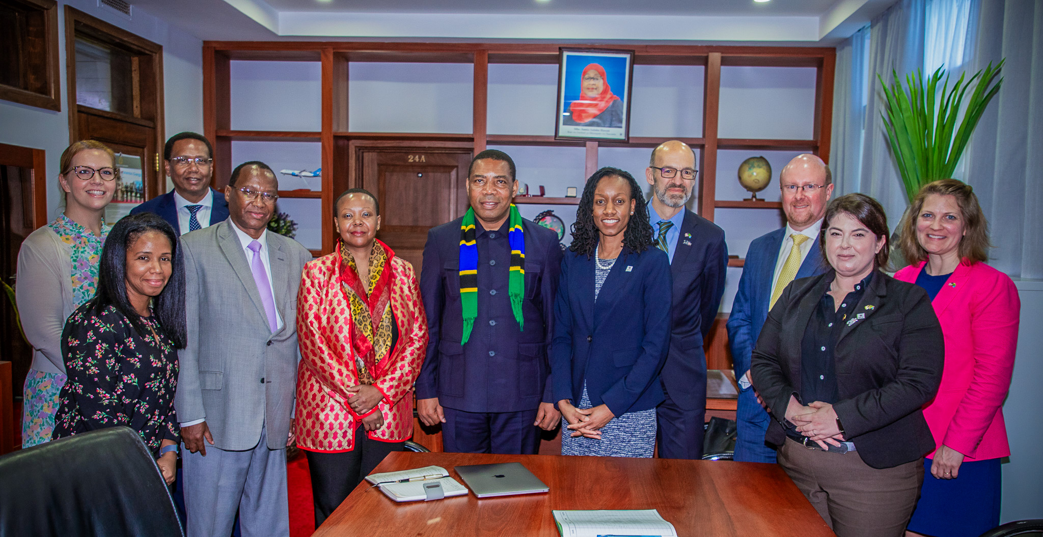 Waziri wa Fedha, Mhe. Dkt. Mwigulu Nchemba (Mb.) (wa sita kulia) akiwa na Balozi wa Tanzania nchini Marekani Mhe. Dkt. Elsie Kanza (wa saba kulia) pamoja na viongozi waandamizi wa Serikali ya Tanzania, amekutana na kufanya mazungumzo na ujumbe wa Shirika la Changamoto za Milenia-MCC kutoka Marekani, ukiongozwa na Naibu Afisa Mtendaji Mkuu wake, Bi. Chidi Blyden (wa tano kulia).